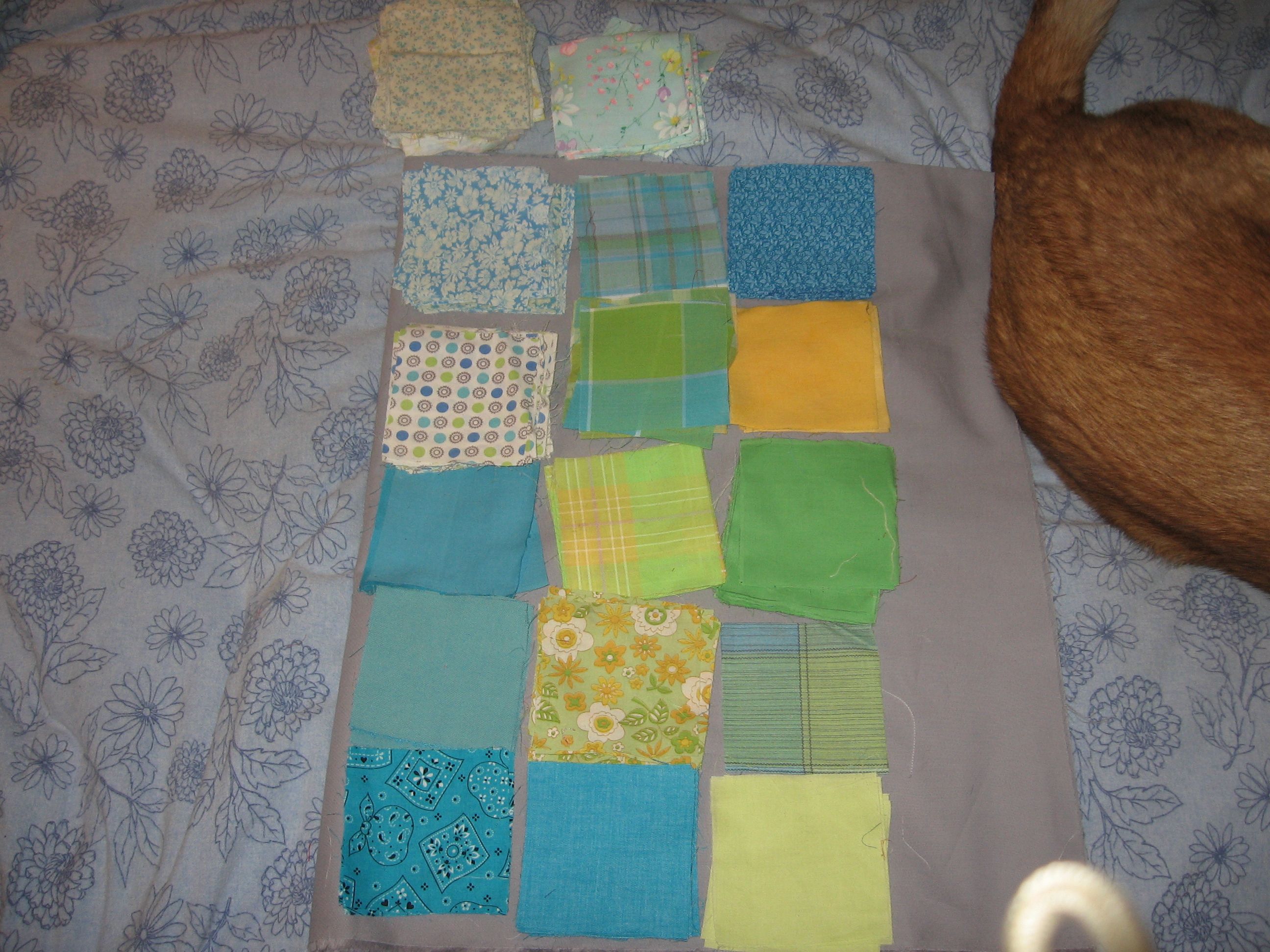 More of the blocks cut by my mom. Solid gray fabric is Kona cotton Medium Gray.