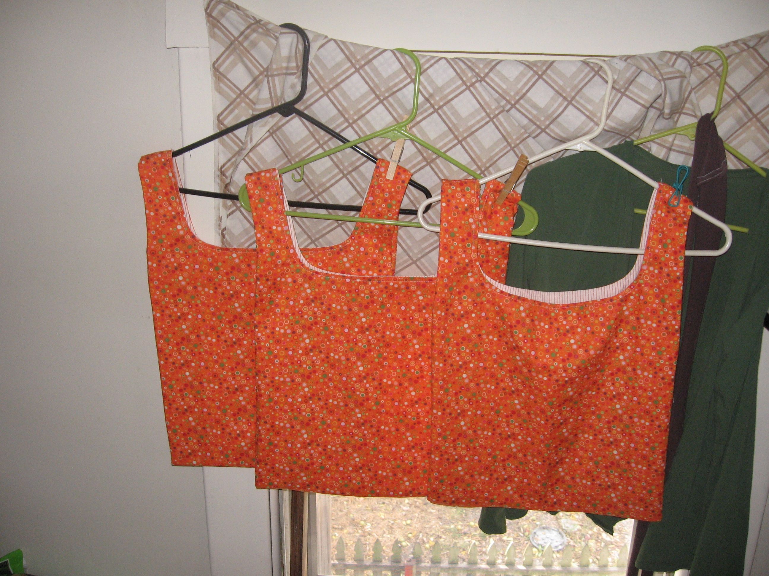August 2011. Inside is lined with a fine orange stripe. This is my second version of the pattern, with slightly longer handles than the first version.